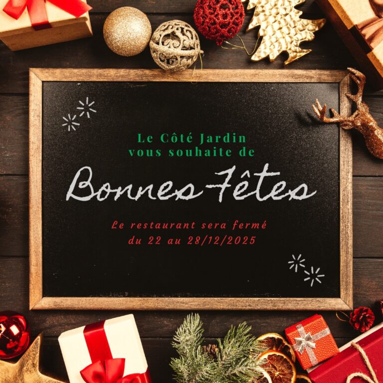 Le Côté Jardin vous propose deux menus évoluant au fil des saisons. Ces menus sont pensés, et conçus par le chef en fonction des produits locaux frais de saisons. Vous pourrez également déjeuner ou dîner à la carte selon vos envies gourmandes…